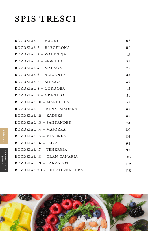 W przewodniku znajdziesz ponad 100 sprawdzonych restauracji we WSZYSTKICH najpopularniejszych miastach w Hiszpanii oraz na wyspach (Barcelona, Alicante, Malaga, Majorka, Ibiza, Madryt, Walencja, Bilbao i więcej). Każde miejsce zawiera: